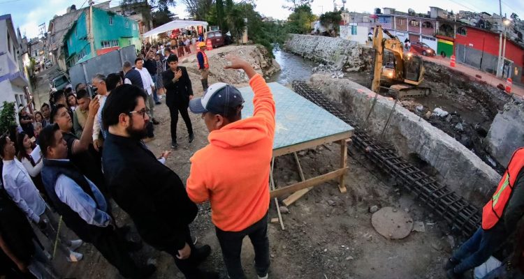 En la colonia San Rafael Chamapa (Tabiquera 5) el presidente municipal, Isaac Montoya Márquez, al acudir a supervisar la obra de rehabilitación del puente vehicular conocido como el Puente del INE que, a lo largo de unos 30 años, esta estructura que conecta a varias comunidades fue colocada de manera provisional y representaba un riesgo para quienes lo usan cotidianamente, hoy la obra es un acto de justicia social para la comunidad.