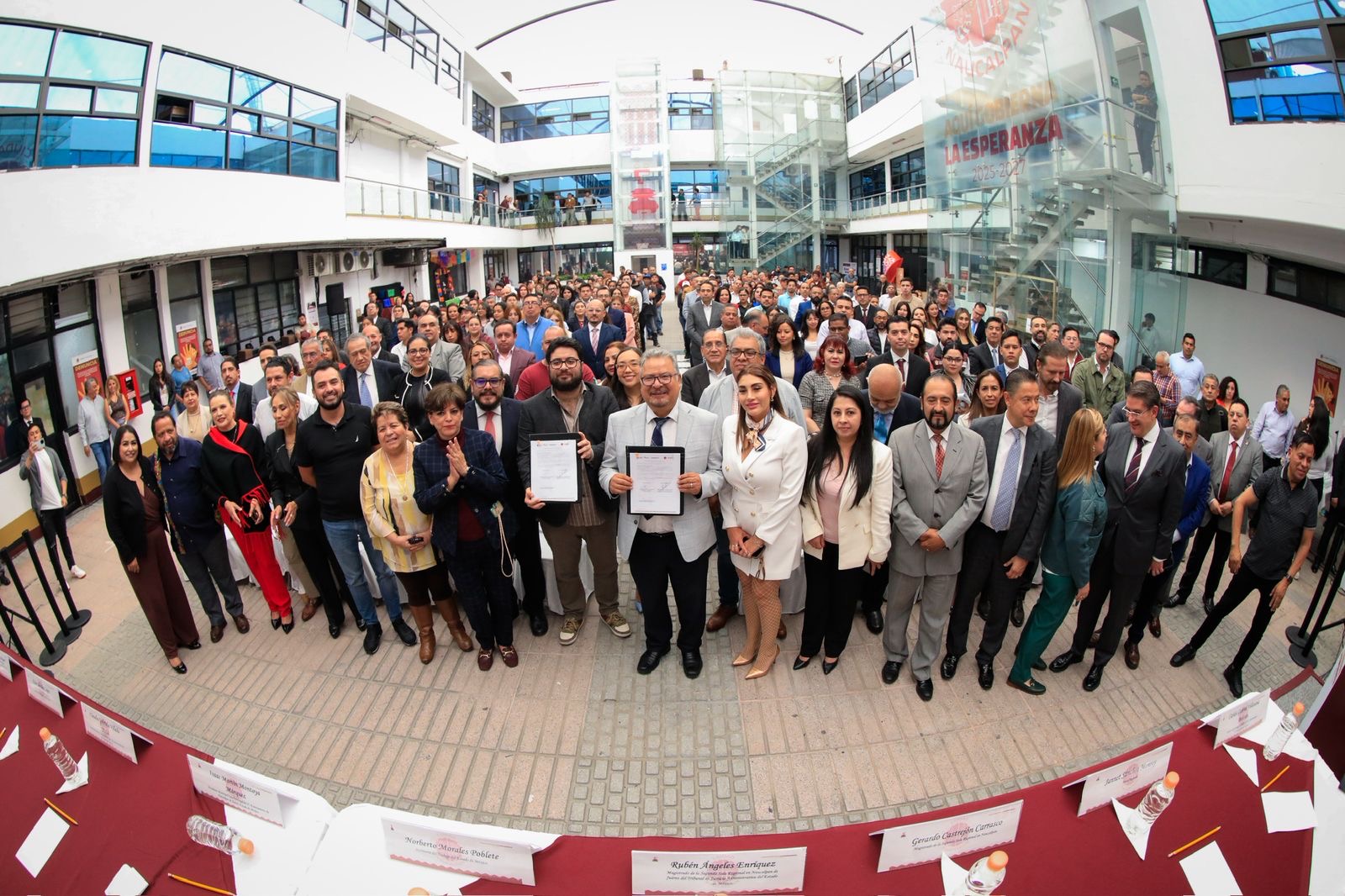 El presidente municipal Isaac Montoya Márquez y el secretario del Trabajo estatal, Norberto Morales Poblete, firmaron un Convenio de Colaboración entre la Secretaría del Trabajo