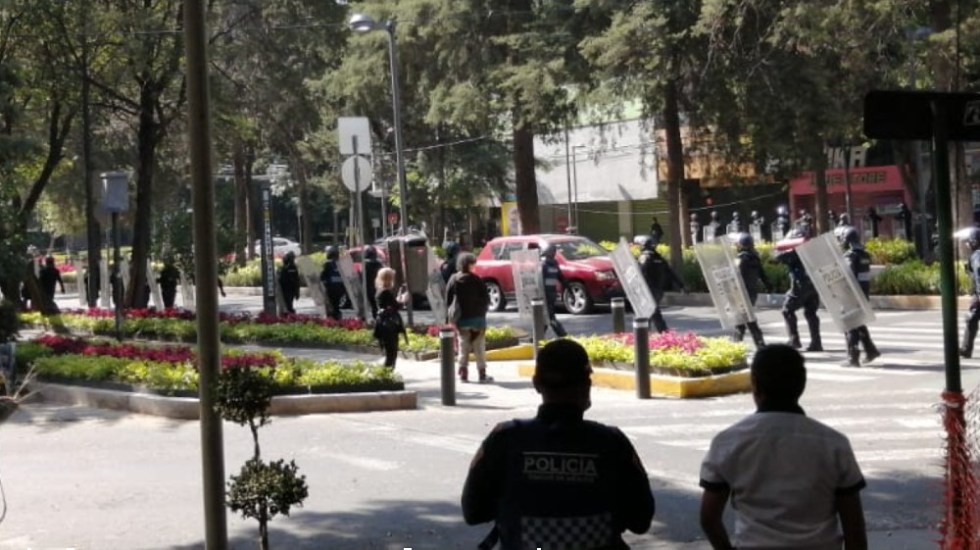 Elementos de la Secretaría de Seguridad Ciudadana de la Ciudad de México resguardan la Casa de la Representación del estado de Jalisco, en donde se espera que, alrededor de las 13:00 h de este miércoles, ocurran manifestaciones en inmediaciones del inmueble.