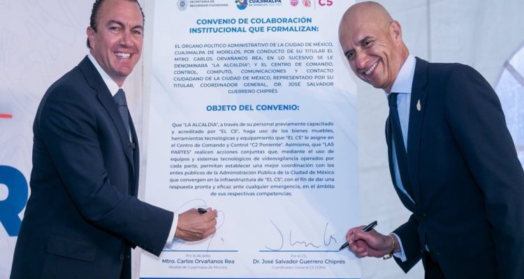 Con el fin de fortalecer la seguridad en Cuajimalpa y la capacidad de respuesta ante emergencias, el alcalde Carlos Orvañanos y el coordinador general del C5, Salvador Guerrero Chiprés, firmaron un convenio de colaboración.