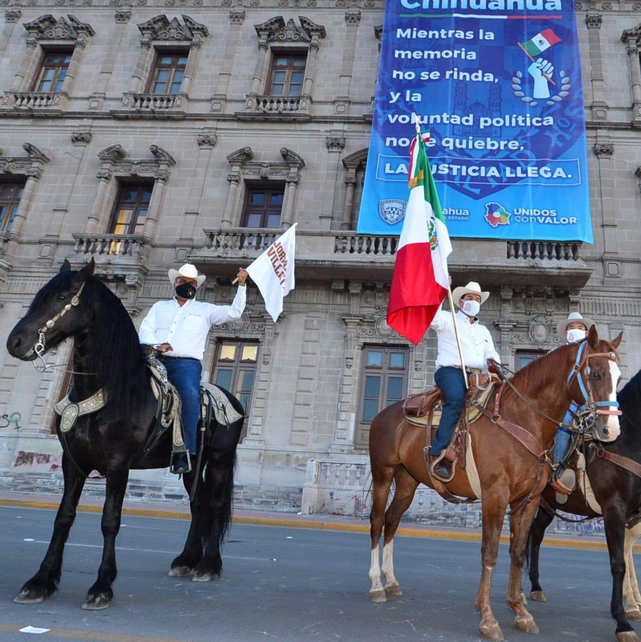 «Más que nunca necesitamos mantener la llama de la esperanza viva en la sociedad, hoy, se oye a Villa cabalgar de nuevo en el norte y de pronto todo vuelve a parecer posible yo creo que todos anhelamos una sociedad más justa y de eso se ha tratado el gobierno que encabeza el licenciado Javier Corral», destacó el Edil parralense en el acto simbólico de la ciudad de Chihuahua.6
