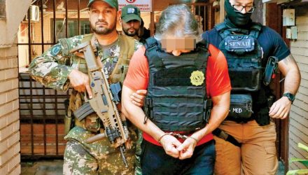 Esposado y con chaleco antibalas. Así salió Hernán Bermúdez desde Asunción, Paraguay, en su vuelo de regreso a México para enfrentar cargos criminales, tras siete