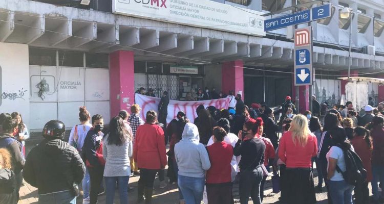 Mujeres integrantes del comercio popular, clausuraron de manera simbólica la Dirección General de Patrimonio Inmobiliario, ubicado en la Avenida Rivera de San Cosme número 75 colonia Santa María la Ribera, en la alcaldía de Cuauhtémoc.