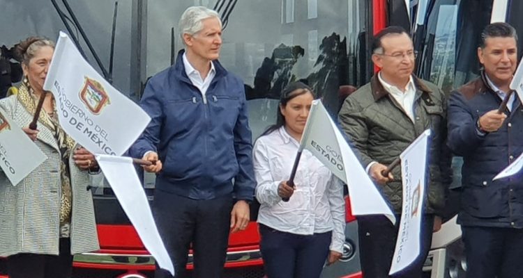 En Almoloya del Río, el Gobernador del Estado de México, Alfredo Del Mazo Maza hizo un llamado a las empresas del transporte público a que se sumen a la iniciativa de renovación del transporte y el uso de sistemas de tecnología de video vigilancia y monitoreo para brindar un servicio más seguro para los pasajeros.