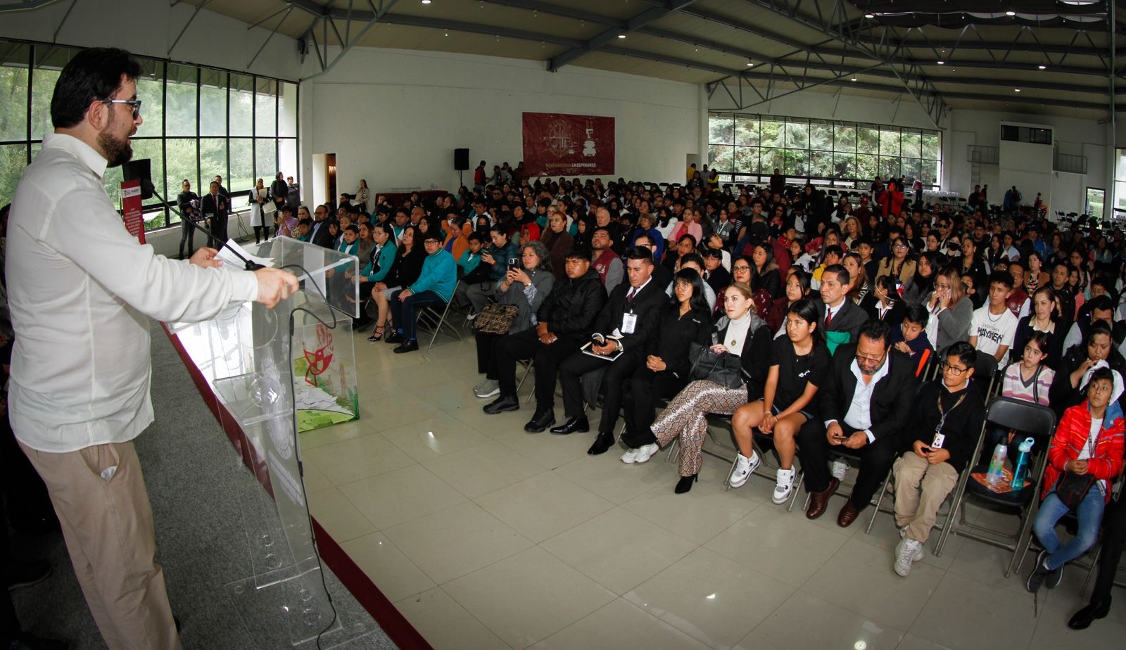 En el evento, que representó el cierre del Foro Intergeneracional para la Construcción del Programa de Protección Integral de Niñas, Niños y Adolescentes (PROEPINNA) 2023-2029, del Gobierno del Estado de México, a través de la Secretaría de las Mujeres, el Alcalde subrayó que gobernar no solamente es administrar recursos, trámites, sino también sembrar esperanza, brindar dignidad y asegurar justicia desde las infancias.