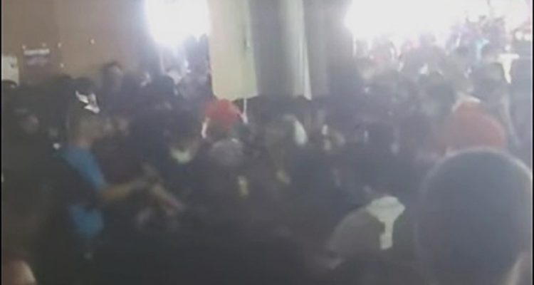 Videos en redes sociales muestran el momento en que decenas de personas comienzan a empujarse para llegar a la salida y cuando los empleados del lugar cierran una de las cortinas para impedir su paso.