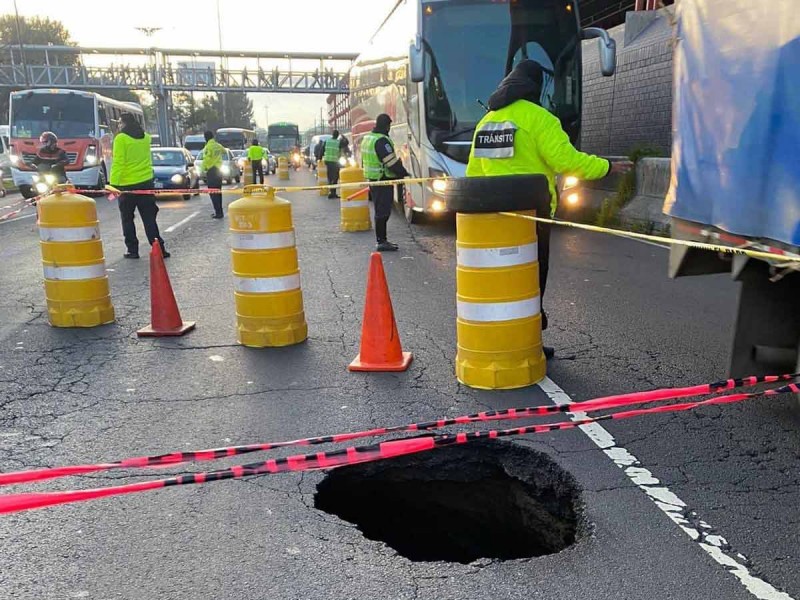 El hoyo se encuentra en el segundo carril de izquierda a derecha y en el sitio ya se encuentran elementos de la Secretaría de Seguridad Ciudadana de la Ciudad de México y del Sistema de Aguas de la Ciudad de México (Sacmex).