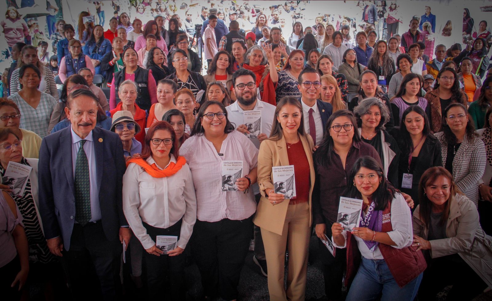 Las Secretarias de las Mujeres del Gobierno de México, Citlalli Hernández Mora; del Estado de México, Mónica Chávez Durán y el Presidente Municipal, Isaac Montoya