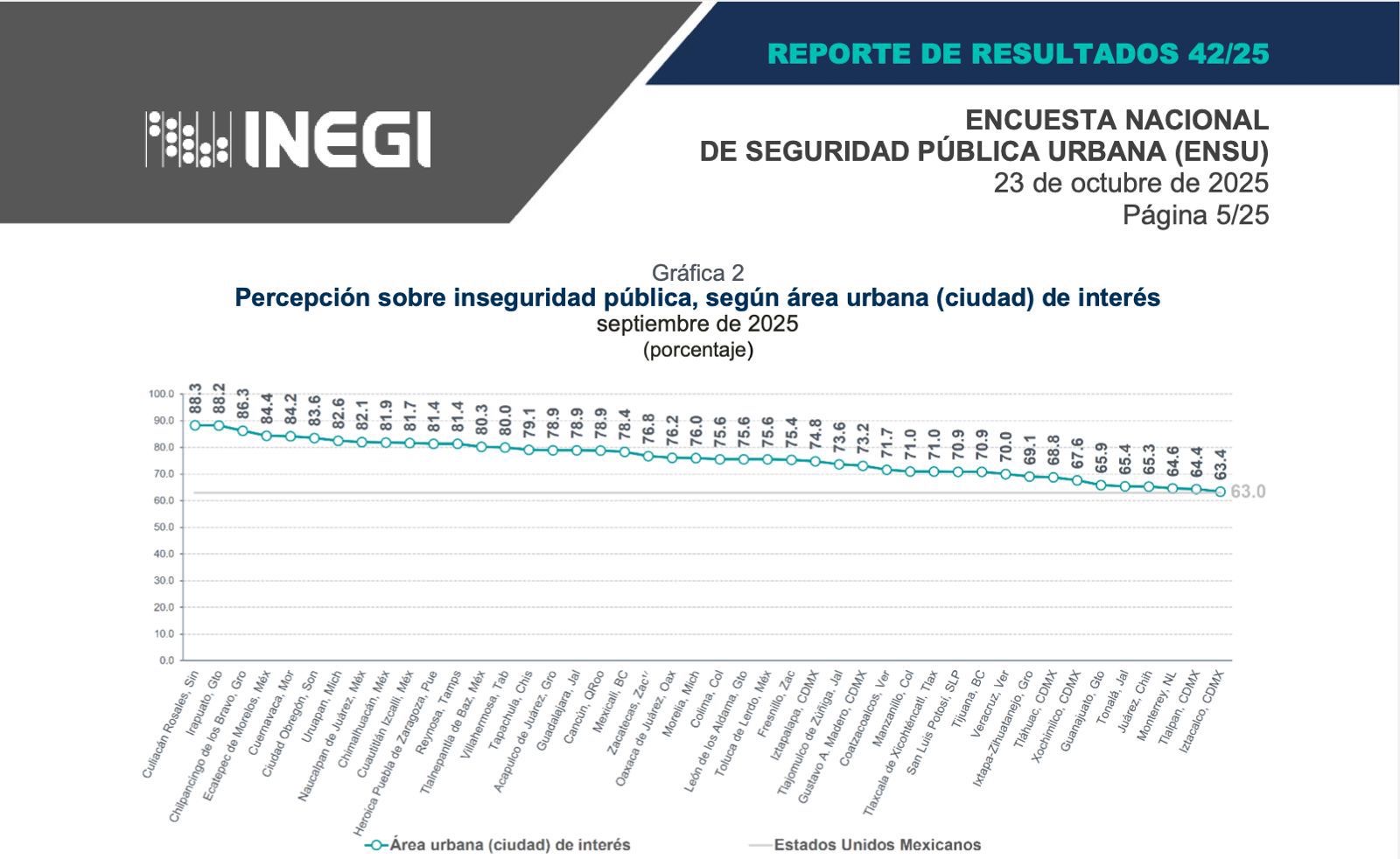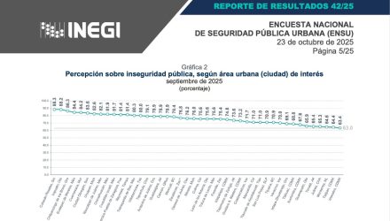 En Naucalpan sigue a la baja la percepción de inseguridad, en el tercer trimestre de 2024 registró el 88.0% ubicándolo en el segundo lugar a