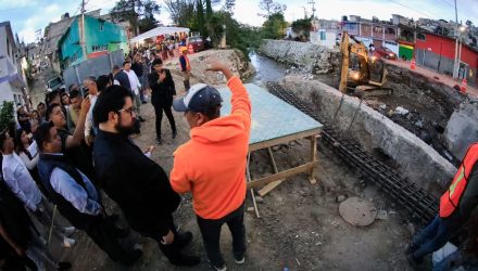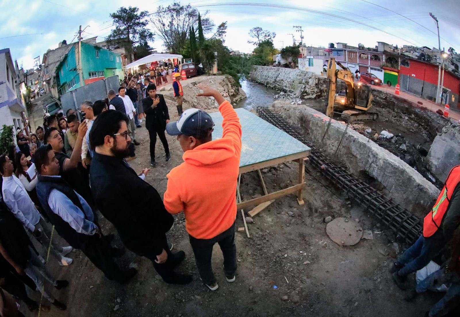 En la colonia San Rafael Chamapa (Tabiquera 5) el presidente municipal, Isaac Montoya Márquez, al acudir a supervisar la obra de rehabilitación del puente vehicular