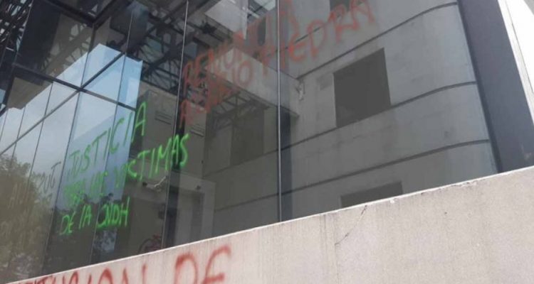 En las paredes quedaron plasmadas algunas frases alusivas a la renuncia de funcionarios de la CNDH, así como el rechazo a la activista Yesenia Zamudio.